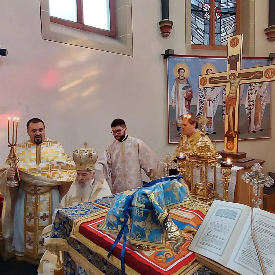 care a săvârșit Sfânta Liturghie în sobor de preoți. În cadrul slujbei a fost hirotonit întru preot diaconul Andrei-Daniel Popa, ca preot coslujitor pe seama parohiei din orașul Leverkusen. La final a fost acordată părintelui Mitropolit icoana Sfinților Cuvioși Cleopa și Paisie de la Mănăstirea Sihăstria, canonizați în acest an.